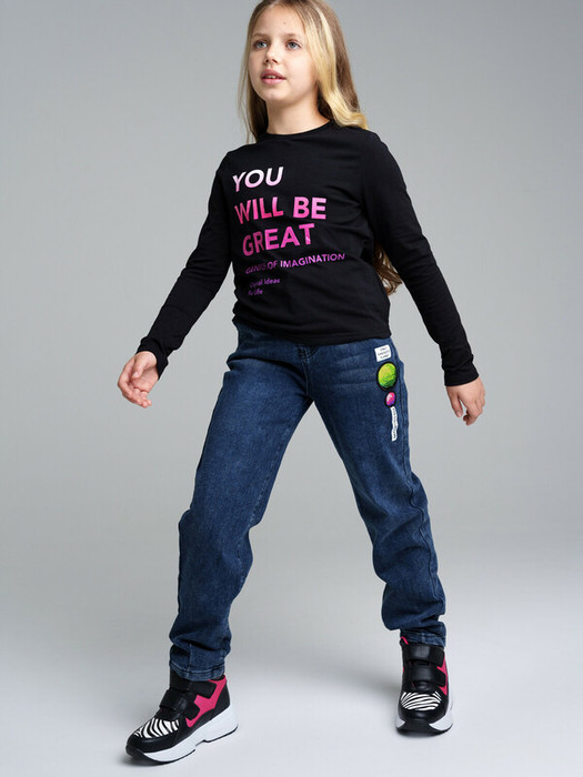 30.03 PlayToday Брюки текстильные джинсовые утепленные флисом для девочек 32321