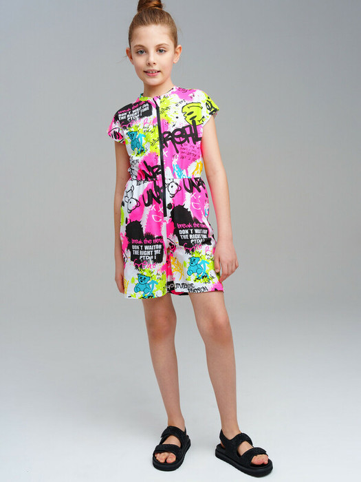 Комбинезон для девочки подростка. Комбинезон из качественного и приятного на ощупь трикотажа джерси. Высокое содержание хлопка 95%. Благодаря наличию эластана в составе ткани изделие проще в уходе и держит форму. Пояс на резинке. Застежка на молнию. Функциональные боковые карманы.