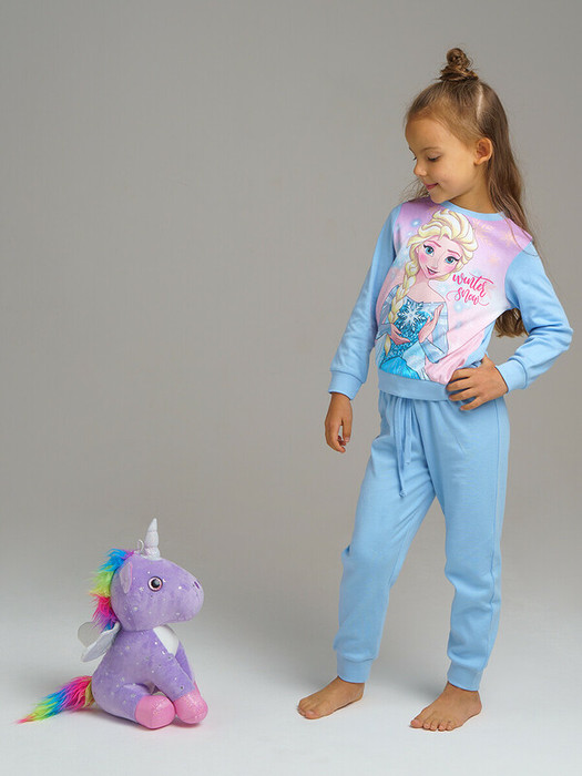 Комплект: толстовка и брюки с принтом Холодное сердце. Приятная ткань с высоким содержанием хлопка. Износостойкий принт. Горловина, манжеты, нижняя кромка брючин в эластичный рубчик.