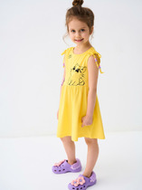 Сарафан с персонажем Disney из качественного и приятного на ощупь трикотажа джерси. Высокое содержание хлопка 95%. Благодаря наличию эластана в составе ткани, изделие проще в уходе и держит форму. Пояс со шнурком. Реверсивные пайетки. Карманы.