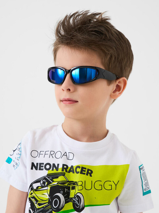 Солнцезащитные очки футуристической формы в стиле Y3K для мальчика подростка. Гибкая пластиковая конструкция мягко облегает лицо, не сдавливая его,и обеспечивают плотную посадку даже во время самых активных занятий ребенка. Солнцезащитные очки с фильтром Cat3. Темные синие линзы имеют защиту UV400, которая отражает 100% ультрафиолетовых лучей с длиной волны менее 400 нанометров, эффективно блокируя все ультрафиолетовые лучи при солнечном свете. Небьющиеся линзы из триацетата целлюлозы устойчивы к царапинам. Ширина оправы - 130 мм, длина дужки - 108 мм. Обхват головы 50-52 см. Такие очки эффективны для защиты глаз в тропиках, у моря и в горах. Очки транспортируются в картонной коробке. В комплект входит фирменный текстильный чехол из микрофибры, с помощью которого легко ухаживать за изделием. Очки транспортируются в картонной коробке.