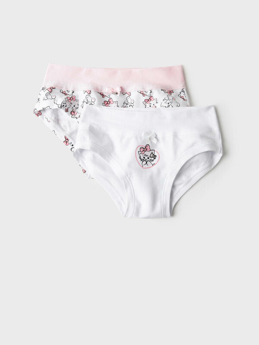 Набор из двух детских трусов-брифов для девочки. Изделия выполнены из мягкого, хлопкового эластичного трикотажа, с широкой резинкой по поясу и окантовкой по вырезам для ног. Модель с милым принтом котят. Внутри предусмотрена ластовица.