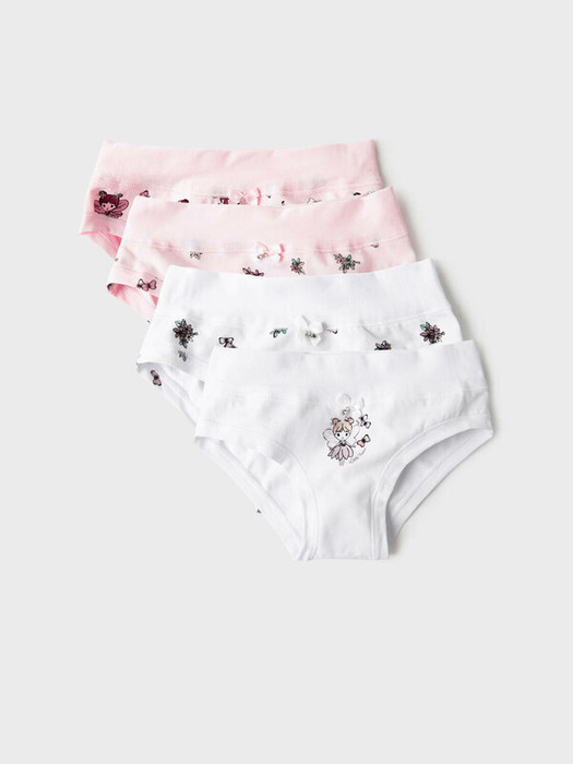 Набор из четырех детских трусов-брифов для девочки. Изделия выполнены из мягкого, хлопкового эластичного трикотажа, с широкой резинкой по поясу и окантовкой по вырезам для ног. Внутри предусмотрена ластовица.