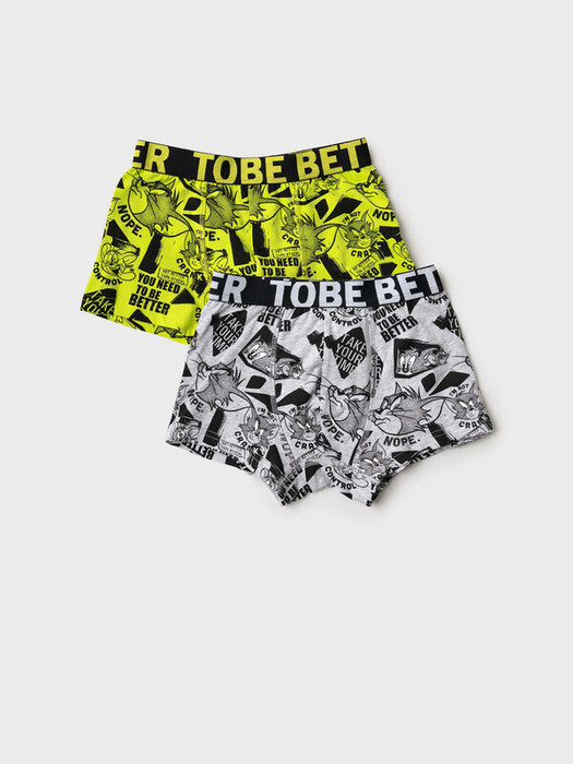 Набор из двух трусов-боксеров для мальчика подростка. Изделие плотно прилегает к телу, не имеет боковых швов, что делает его особенно комфортным. Принт с любимыми героями - Том и Джерри. Эластичный пояс с логотипом бренда обеспечивает надёжную посадку. Материал — мягкий хлопковый трикотаж, приятный к телу.