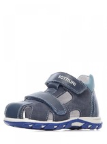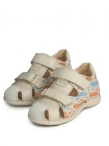 Сандали Bumi на липучке выполнены из натуральной и искусственной кожи.