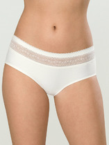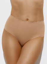 Трусы-бразильеры из трикотажного полотна и эластичного кружева. Передняя часть полностью гладкая. Кружево по ножке незаметно под одеждой. Ластовица — хлопковая. Состав: Хлопок 10%, Эластан 15%, ПА 75%