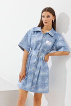 Платье свободного силуэта из вискозной плательной ткани. Изделие отрезное по линии талии, с ярусами на юбке. V-образный вырез горловины с декоративной завязкой. Рукав втачной, снизу присборен и окантован бейкой. В комплекте пояс из основной ткани. В таблице размеров представлены параметры человека, а не изделия.