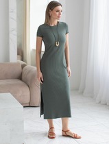 06.04 Vilatte Платье из трикотажа в широкий рубчик D42.228 т.оливковый