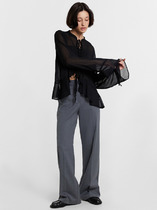 Брюки прямого силуэта из костюмной ткани. Пояс притачной с эластичной резиной.