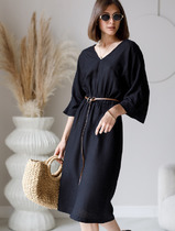 09.04 Vilatte Платье с цельнокроеным рукавом изо льна с вискозой D22.219 черный