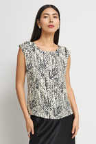 Джемпер прилегающего силуэта из эластичного полотна в рубчик. V-образный вырез горловины и линия проймы оформлены бейками.