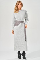 Платье свободного силуэта из плательной ткани. По центру передней части изделия выполнен шов. Цельнокроеная стойка, переходящая в V-образный вырез горловины, визуально делает фигуру стройнее. Втачной короткий рукав.