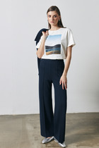 Vilatte Брюки-палаццо на резинке сзади D44.148 черный
