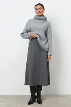 Брюки прямого силуэта из эластичного полотна. Пояс притачной с эластичной резиной. На передней части брюк застрочены стрелки.
