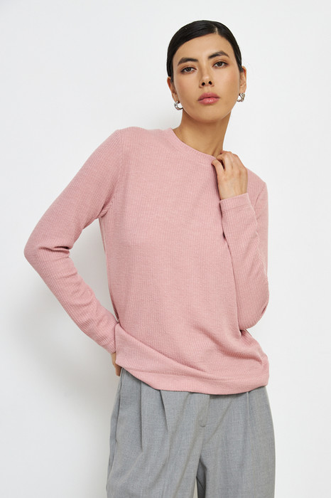 Джемпер свободного силуэта из фактурного эластичного полотна. Втачной длинный рукав. Круглый вырез горловины оформлен бейкой. Женский джемпер стал незаменимой и популярной разновидностью одежды, которая может применяться буквально во всех случаях жизни.