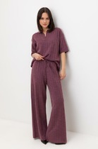 Брюки прямого силуэта из костюмной ткани. Пояс притачной с эластичной резиной. На передней части брюк застрочены стрелки.