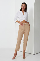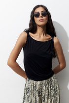 Топ из вискозной ткани с сатиновым блеском. Свободный силуэт, с небольшими разрезами в боковых швах. Круглый вырез горловины и линии проймы окантованы косыми бейками из основной ткани.