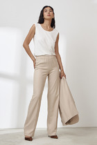 Топ из эластичного полотна полуприлегающего силуэта. Линия горловины и линия проймы окантованы эластичной бейкой.