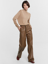 Костюм из эластичного полотна. Брюки прямого силуэта. Пояс с эластичной резиной. Жакет прямого свободного кроя с женственным шалевым воротником. На передней части изделия застёжка на пуговицу и накладные карманы. Втачной рукав. Изделие с плечевыми накладками, которые при желании можно убрать.