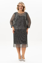 Платье свободного силуэта из плательной ткани. По центру передней части изделия выполнен шов. Цельнокроеная стойка, переходящая в V-образный вырез горловины, визуально делает фигуру стройнее. Втачной длинный рукав с центральным швом и декоративным разрезом по низу рукава. В комплекте пояс из основной ткани.