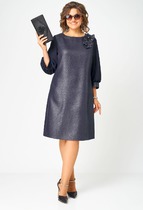 Платье свободного силуэта из вискозной плательной ткани. Изделие отрезное по линии бедра. Верхняя часть юбки со сборкой. Втачной длинный рукав. Круглый вырез горловины, сзади застёжка на петлю-пуговицу. В таблице размеров представлены параметры человека, а не изделия.