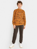 свободного силуэта, низ штанин на манжетах. Удобный пояс на эластичной резинке.Материал: Джемпер – велюр.Брюки – велюр.Состав: Джемпер - 80% хб, 20% п/э.Состав - 80%хб, 20% п/э.