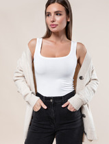 Моделирующий топ на широких бретелях со съемными чашками, выполнен из мягкой эластичной микрофибры. Мягкие поролоновые вкладыши оказывают легкий пуш-ап эффект, при необходимости, вкладыши можно убрать.