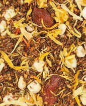 Каркадэ, сушеное яблоко, листья мяты, смородины и клубники, лепестки календулы, аромамасла, лепестки чайной розы