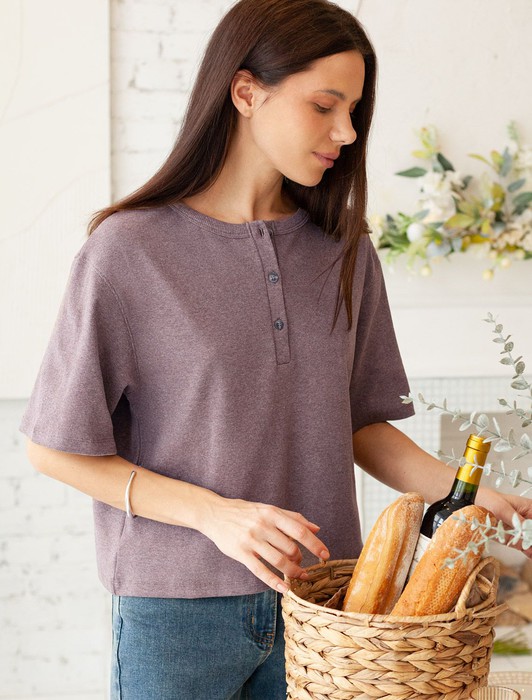 Состав: 95%Хлопок 5%ПУ Плотность: 220 Г/м2 Параметры модели на первом фото: Рост 170, бюст 83, талия 64, бедра 88Футболка выполнена из фактурного трикотажа в рубчик. Модель свободного кроя дополнена пуговицами с логотипом бренда. Благодаря мягкой хлопковой ткани в рубчик, футболка очень приятная к телу. Эластан в составе гарантирует комфорт и формоустойчивость изделия. Сочетается в костюме с шортами D48.007 и брюками D44.121