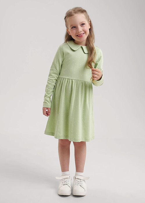 Милое романтичное платье из хлопкового трикотажа в набивку- то, что нужно для создания классного повседневного образа! Модель с пышной юбкой и декоративным воротничком идеально дополнит твой гардероб. Создавай стильные повседневные образы и будь в тренде