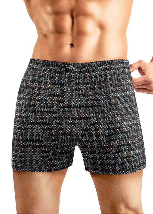 Боксеры комфортной посадки выполнены из оригинального полотна в контурную геометрию. Трусы дополнены пуговицами и жаккардовым логотипом.