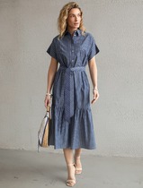 Платье в полоску А-силуэта с поясом из легкого хлопкового поплина
