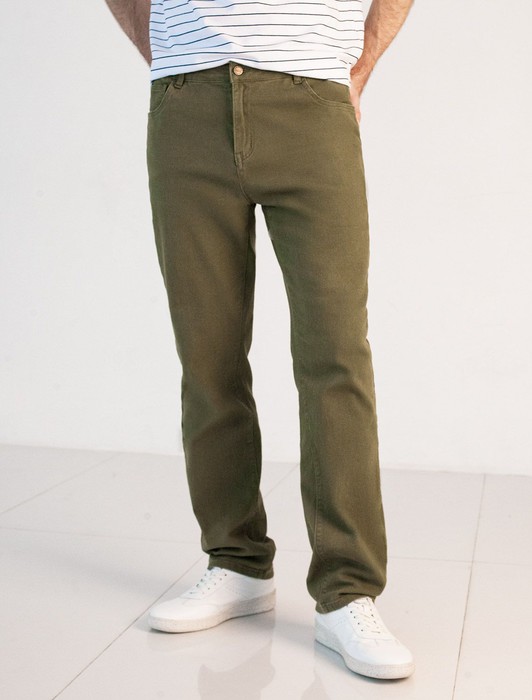 Состав: 100%Хлопок Параметры модели на первом фото: Рост 190, бюст 108, талия 87, бедра 104Темно-оливковые брюки, слегка зауженные к низу, выполнили из 100% хлопкового денима. Изделие комфортно садится по фигуре, обеспечивая свободу движений. Легко сочетается со всеми цветами одежды. Модель дополнили высококачественной фурнитурой бренда.