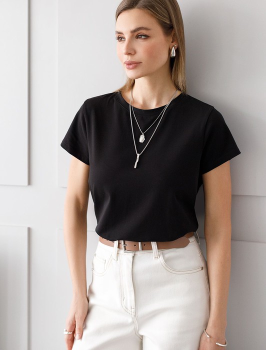 Состав: 92%Хлопок 8%ПУ Параметры модели на первом фото: Рост 170, бюст 89, талия 63, бедра 92Футболка выполнена из премиального хлопка. Базовая модель, которая хорошо будет сочетаться в гардеробе с любым низом и за счет посадки по фигуре, любым дополнительным верхом вне зависимости сезона. Эластан в составе способствует формоустойчивости и меньшей сминаемости. Изделие украшено логотипом бренда.
