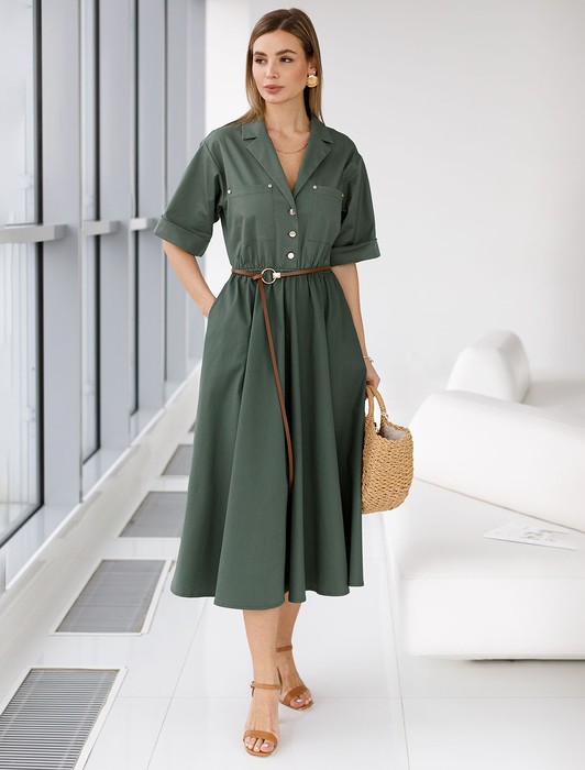 Состав: 97%Хлопок 3%ПУПлатье в стиле сафари выполнено из хлопкового твила. Изделие дополнено тонким ремешком из эко-кожи, боковыми и нагрудными карманами, подворотами на рукавах. Застежка на пуговицы спереди. Благодаря наличию эластана в составе изделие сохранит свой безупречный внешний вид в течение долгого времени. Обладает высокой воздухопроницаемостью, в платье будет комфортно даже в жаркое время года.