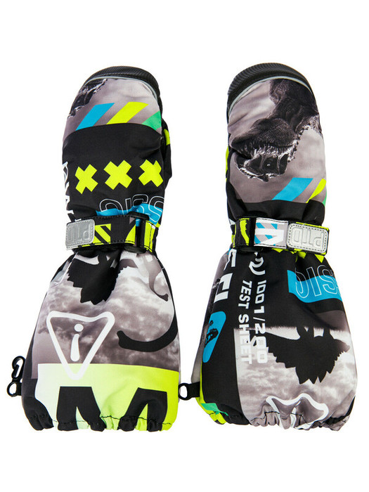 Зимние варежки-краги с мембраной. Утеплитель – синтепон. Мягкая ладошка из влагостойкого полиуретана. Регулируемая застёжка с липучкой по запястью. Застежка для скрепления пары между собой. Светоотражающие элементы.