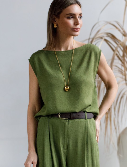 Состав: 70%Вис 30%ЛенЛаконичный топ выполнен изо льна с вискозой. Изделие с горловиной формы лодочка, без застежек. Лён в составе обеспечивает прочность и воздухопроницаемость, вискоза эластичность и гладкость ткани. Благодаря такому сочетанию изделие хорошо драпируется, меньше мнется и сохраняет форму в течении долгого времени. Сочетается в костюме с брюками D24.222 и шортами D28.052