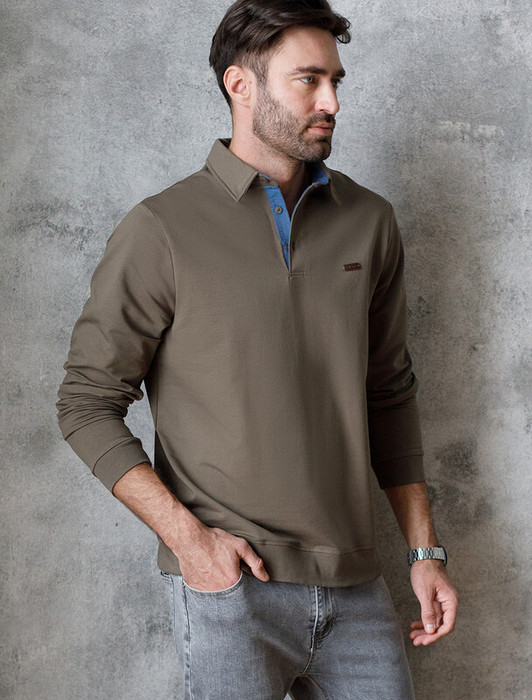 Совместные покупки Нижневартовск Мужская одежда Джемперы, свитеры — Акция Vilatte Джемпер-поло из эластичного футера с застежкой на пуговицы U49.02
