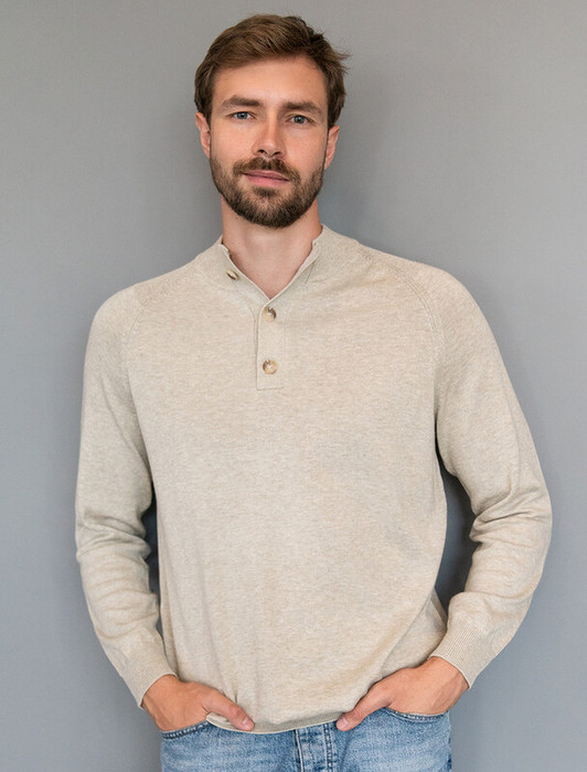 Совместные покупки Нижневартовск Мужская одежда Джемперы, свитеры — Акция Vilatte Джемпер тонкой вязки с застежкой на пуговицы U39.004 св.бежевый м