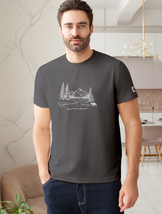 Совместные покупки Нижневартовск Мужская одежда Футболки — Акция Vilatte Футболка из премиального хлопка с авторским принтом U49.045 серый