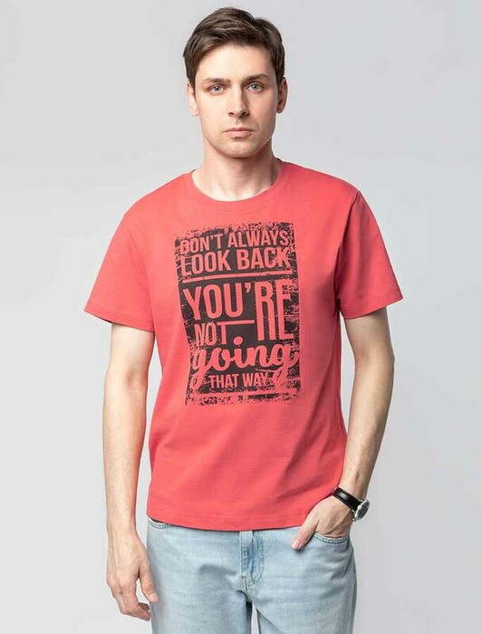 Совместные покупки Нижневартовск Мужская одежда Футболки — Акция Vilatte Футболка из премиального хлопка с принтом U49.004 коралловый_dont