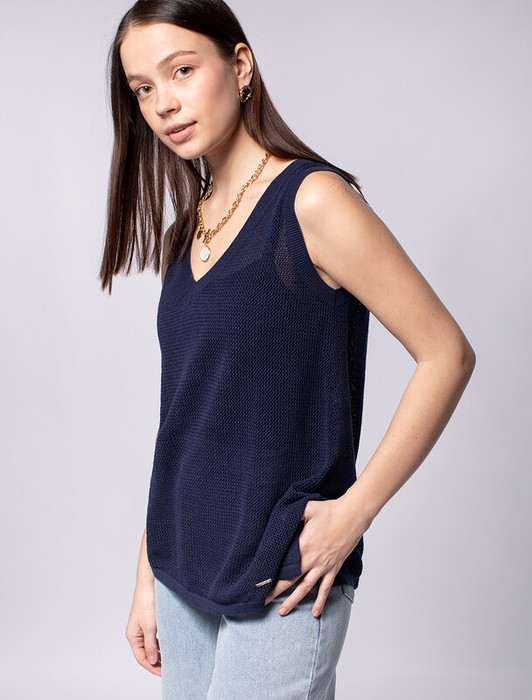 Акция Vilatte Летний топ полупрозрачной вязки из хлопка D33.010 темно-синий