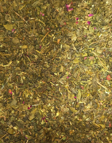 Классический ганпаудер, зелёный байховый чай, лепестки роз, цукаты земляники, аромамасла