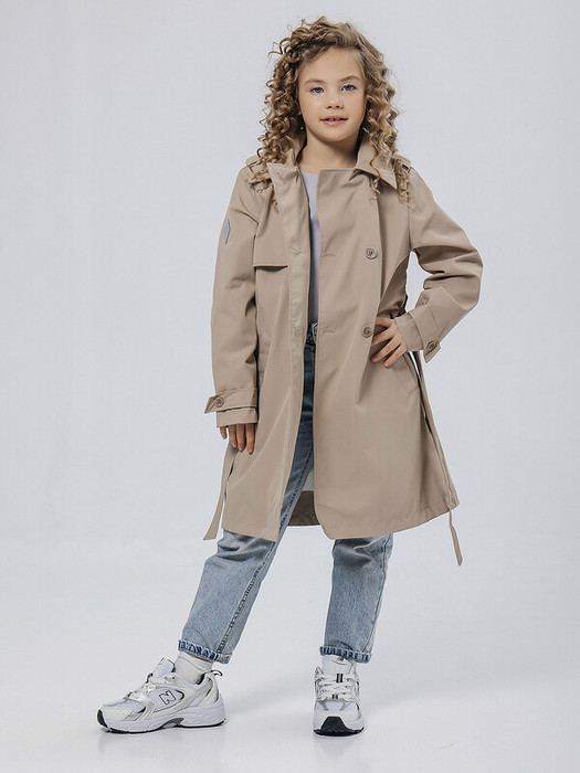 Классический двубортный тренч - прекрасное дополнение к школьной форме. Тренч стильный, эргономичный. Подкладка – флис. Правая полочка и спинка дополнены отлетными кокетками. Застежка – пуговицы. Линия талии подчеркнута поясом. Два боковых кармана с широкими листочками. Отложной воротник. Дополняют модель удлиненные погоны и отделочные паты в нижней части рукавов. На отлетной кокетке спинки и правом рукаве светоотражающий термопринт. В боковом шве - светоотражающий флажок.Характеристики:Ткань верха: мембранная тканьПодклад: полиэстер