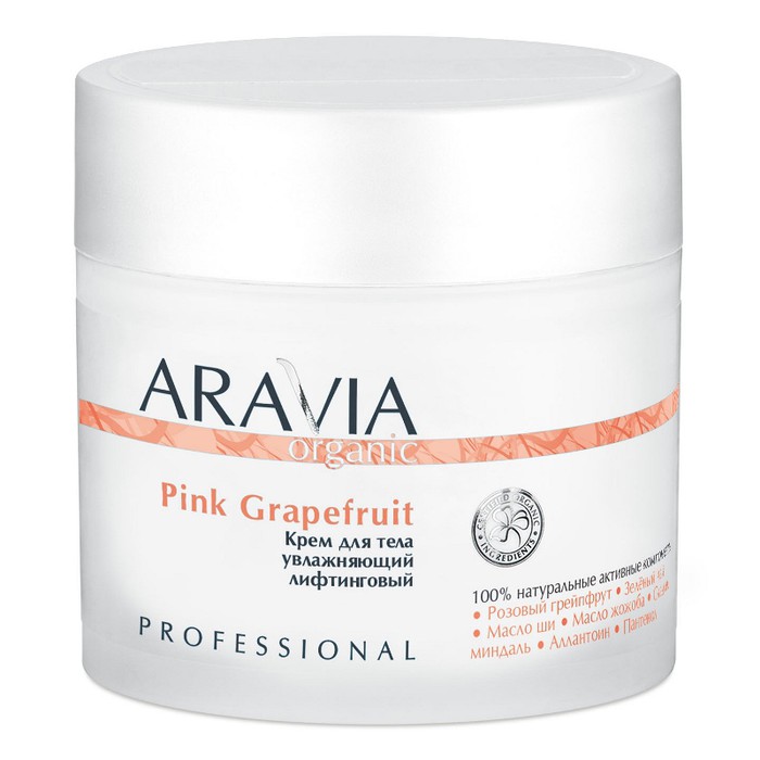 Профессиональный увлажняющий крем для тела с эффектом лифтинга для всех типов кожи. Содержит в составе экстракт розового грейпфрута, обладающий антицеллюлитным и тонизирующим действием. Смесь масел ши, миндаля и жожоба оказывает увлажняющее, подтягивающее и питательное действие. Комплекс аллантоина и пантенола успокаивает, обеспечивает противовоспалительное действие на кожу, снижает негативное влияние хлорированной воды и инсоляции. Зелёный чай защищает клетки от повреждений. Ежедневное применение крема гарантирует значительное улучшение внешнего вида кожи тела, снижает проявление возрастных изменений, благоприятно влияет на тургор и эластичность.Показания к применению: Крем рекомендуется для регулярного ухода после принятия душа, а также в качестве завершающего ухода в профессиональной процедуре.Рекомендации по применению: нанести крем на сухую чистую кожу тела до полного впитывания.Активные компоненты: розовый грейпфрут (экстракт), масло ши, масло жожоба, сладкий миндаль (масло), аллантоин, пантенол, масло сои, глицерин, зелёный чай (экстракт), сорбитол (увлажнитель).Состав: (INCI) Aqua, Glycine Soja (Soybean) Oil, C12-15 Alkyl Benzoate, Butylorospermum Parkii (Shea Butter), Potassium Cetyl Phosphate, Trimethylglycine, Glycerin, Prunus Amygdalus Dulcis (Sweet Almond) Oil, Simmondsia Chinensis (Jojoba) Seed Oil, Citrus grandis Extract, Organic Camelia Sinensis Leaf Extract*, Panthenol, Allantoin, Sorbitol, Glyceryl Stearate, Cyclopentasiloxane, Sodium Polyacrylate, Phenoxyethanol (and) Methylparaben (and) Ethylparaben, Propylparaben, Parfum.