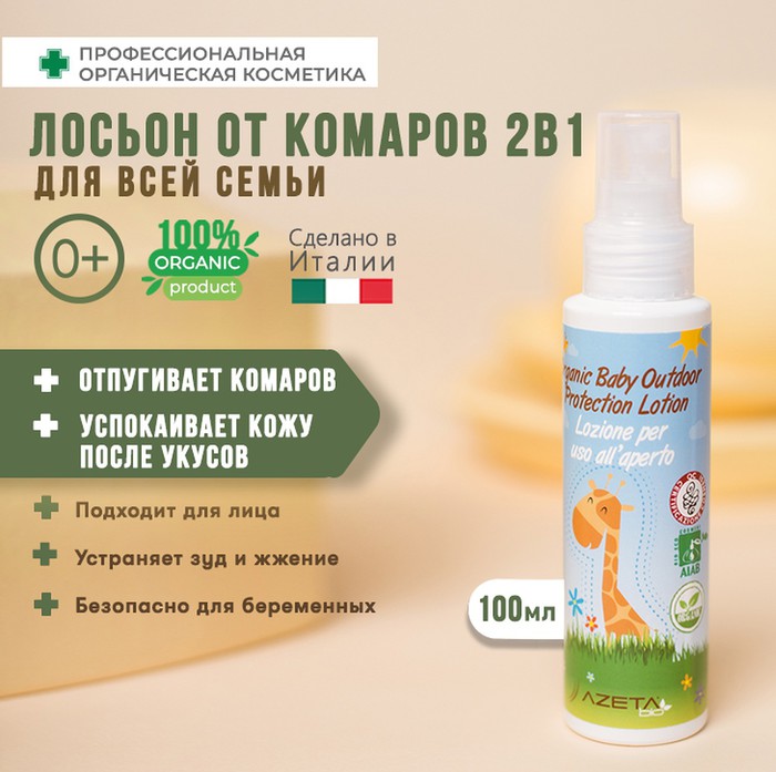 Использование лосьона от комаров помогает естественным образом отпугивать насекомых, защищая открытые участки от любого контакта. Лосьон представляет собой нежирную эмульсию, которая быстро впитывается и подходит для использования на любых участках тела, в том числе и на лице. Средство показано к использованию с рождения.