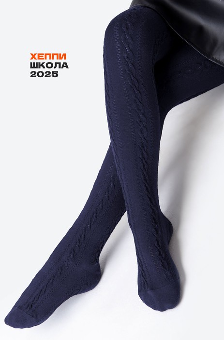 Ажурные колготки для девочки – это всегда нарядный вариант в школу, на праздник или торжество. Синие колготки с рисунком косы выполнены с высоким содержанием хлопка. Демисезонная модель на высокой талии, в поясе мягкая эластичная резинка.