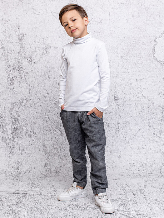 Водолазка (джемпер) для мальчика с длинными рукавами в белой расцветке из ткани супрем пенье повышенного граммажа. Важная базовая вещь в любом гардеробе: для школы и повседневной носки. Стильная, уютная, на любое время года.Характеристики:Ткань: Супрем пенье (повышенный граммаж) 92% хлопок 8% лайкраПроизводитель: batik