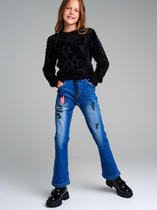 Широкие джинсовые брюки-джоггеры из качественного 100% хлопкового денима, который не растягивается и не теряет форму. Свободные в бедрах штанины, зауженные книзу с эластичными резинками на манжетах. Классическая средняя посадка по талии, эластичный пояс-резинка на завязках, два боковых прорезных кармана и два накладных задних кармана.Характеристики:Ткань:  100% хлопокПроизводитель: batik