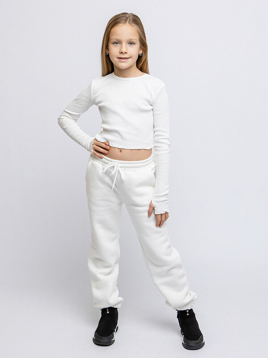 Лонгслив - футболка с длинным рукавом для девочки в молочной расцветке. Однотонный укороченный лонгслив из модной ткани кашкорсе, выполненной из натурального хлопка с добавлением эластана. Горловина круглая, край рукавов и по низу фигурный.Характеристики:Ткань: Кашкорсе 95% хлопок 5% эластанПроизводитель: batik